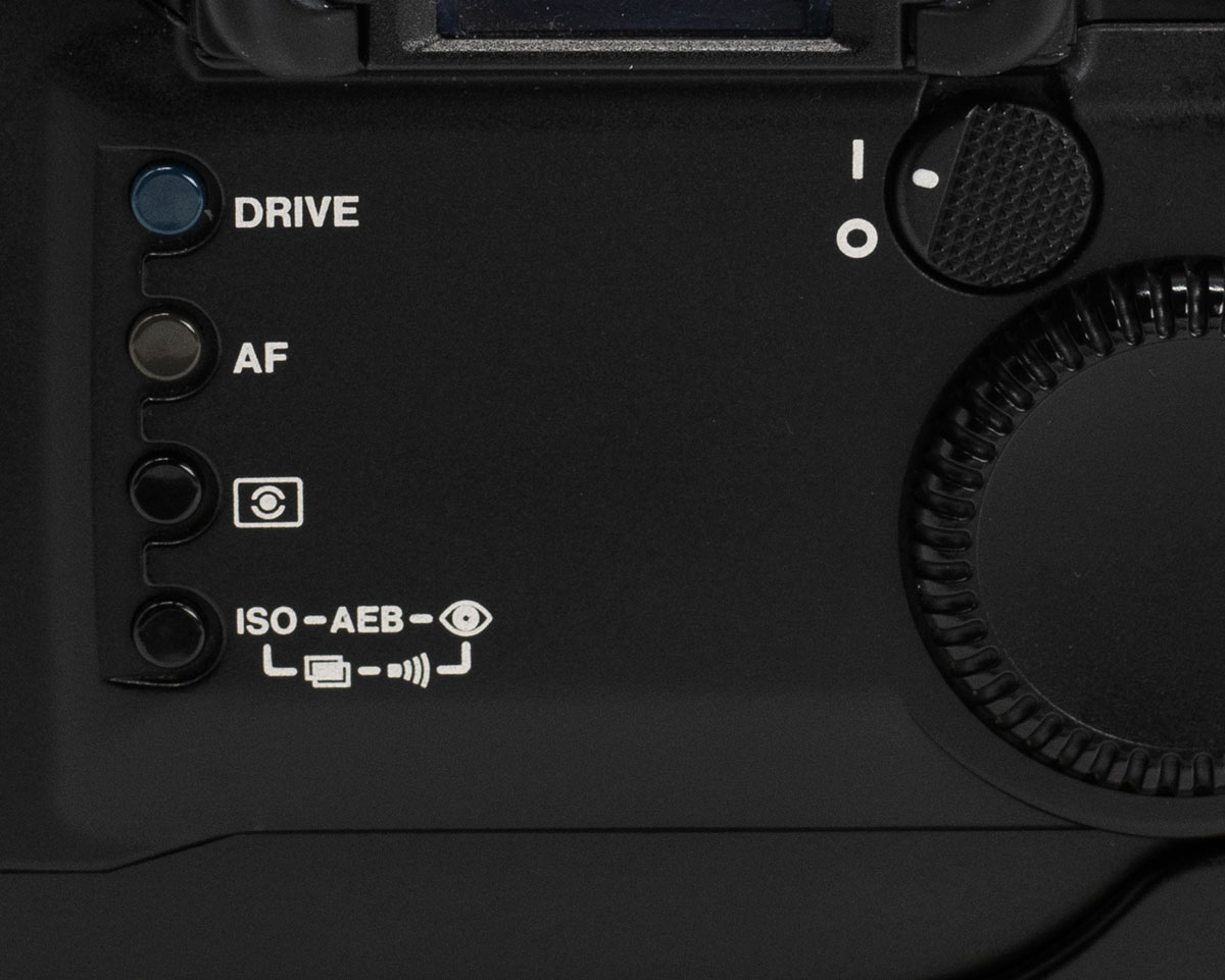 With the release of EOS A2E (EOS 5 in Europe and Japan), we finally got the step up from the 10s. It increased the focusing points to 5, and gave us a 16-zone evaluative metering system (up from the 8-zone in the 10s), plus a true 3.5% spot and center-weighted averaging. It also offered a 5-fps High-Speed film advance mode, as well as a lower 3-fps, and a single advance option.