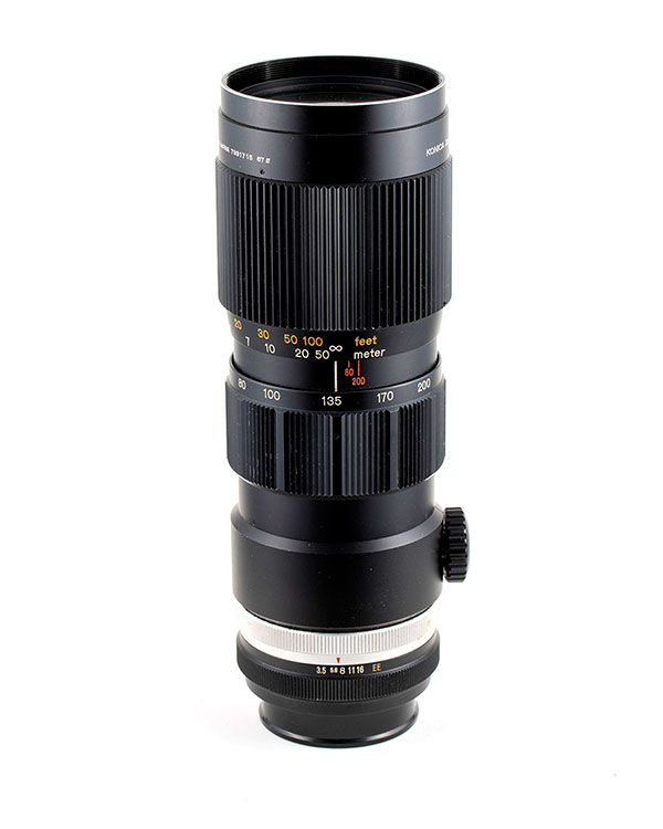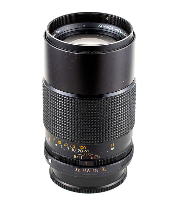 The Autoreflex cameras were well-built and rugged and had a great complement of system lenses (Konica K/AR mount). One of the most notable lenses they produced was the 35-100 f/2.8 – a fast zoom with incredible range (and price) for the early 1970s.