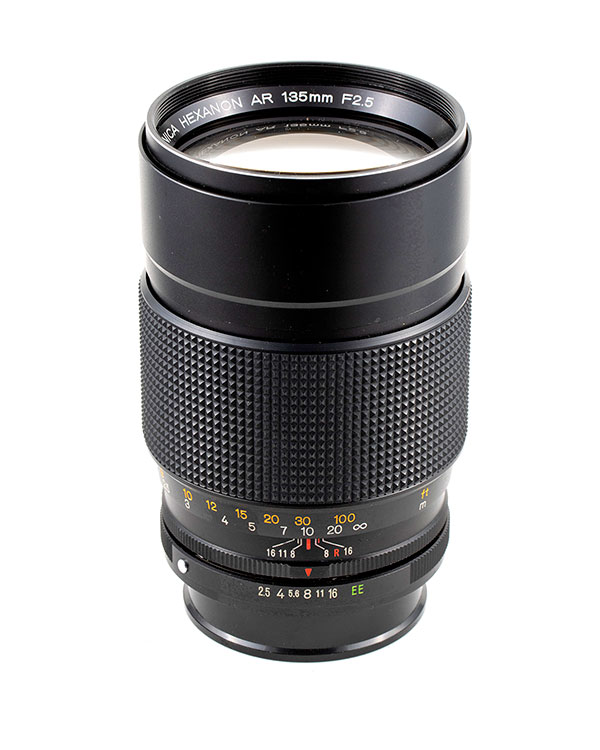 The Autoreflex cameras were well-built and rugged and had a great complement of system lenses (Konica K/AR mount). One of the most notable lenses they produced was the 35-100 f/2.8 – a fast zoom with incredible range (and price) for the early 1970s.