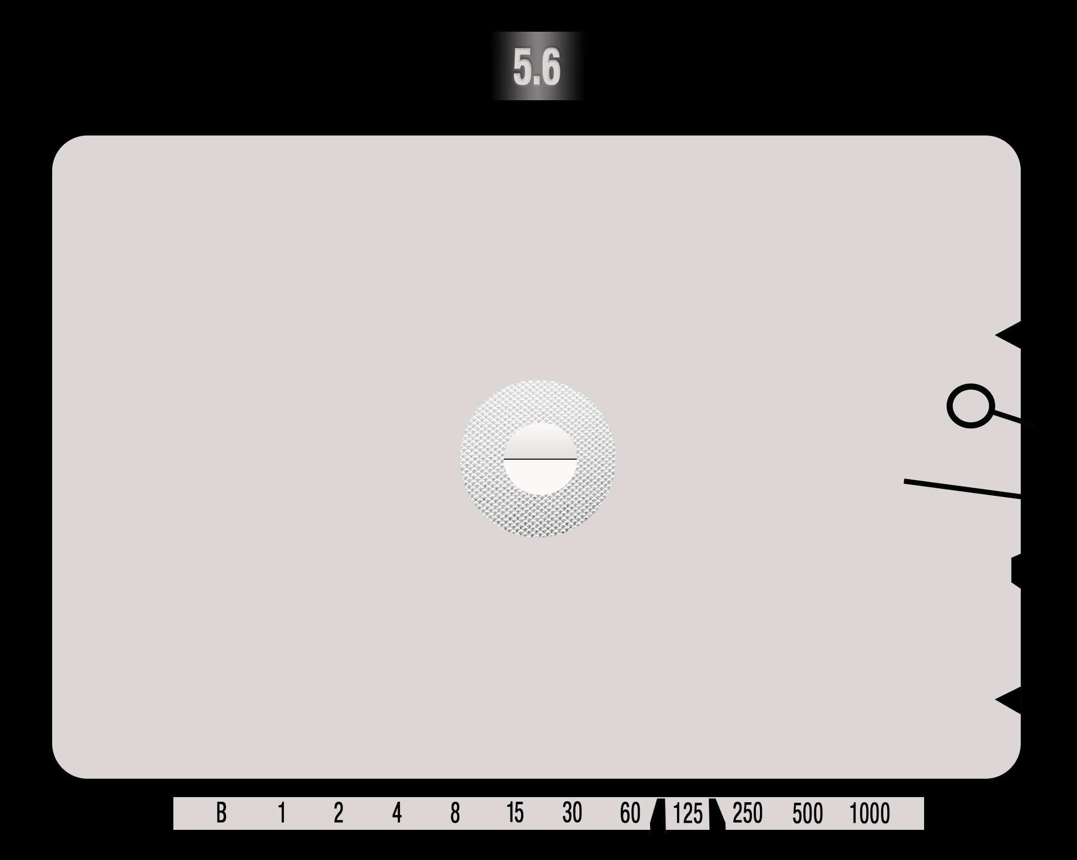 SR-T 101 and 201 Micro-prism focusing spot. Selected shutter speed visible in viewfinder.