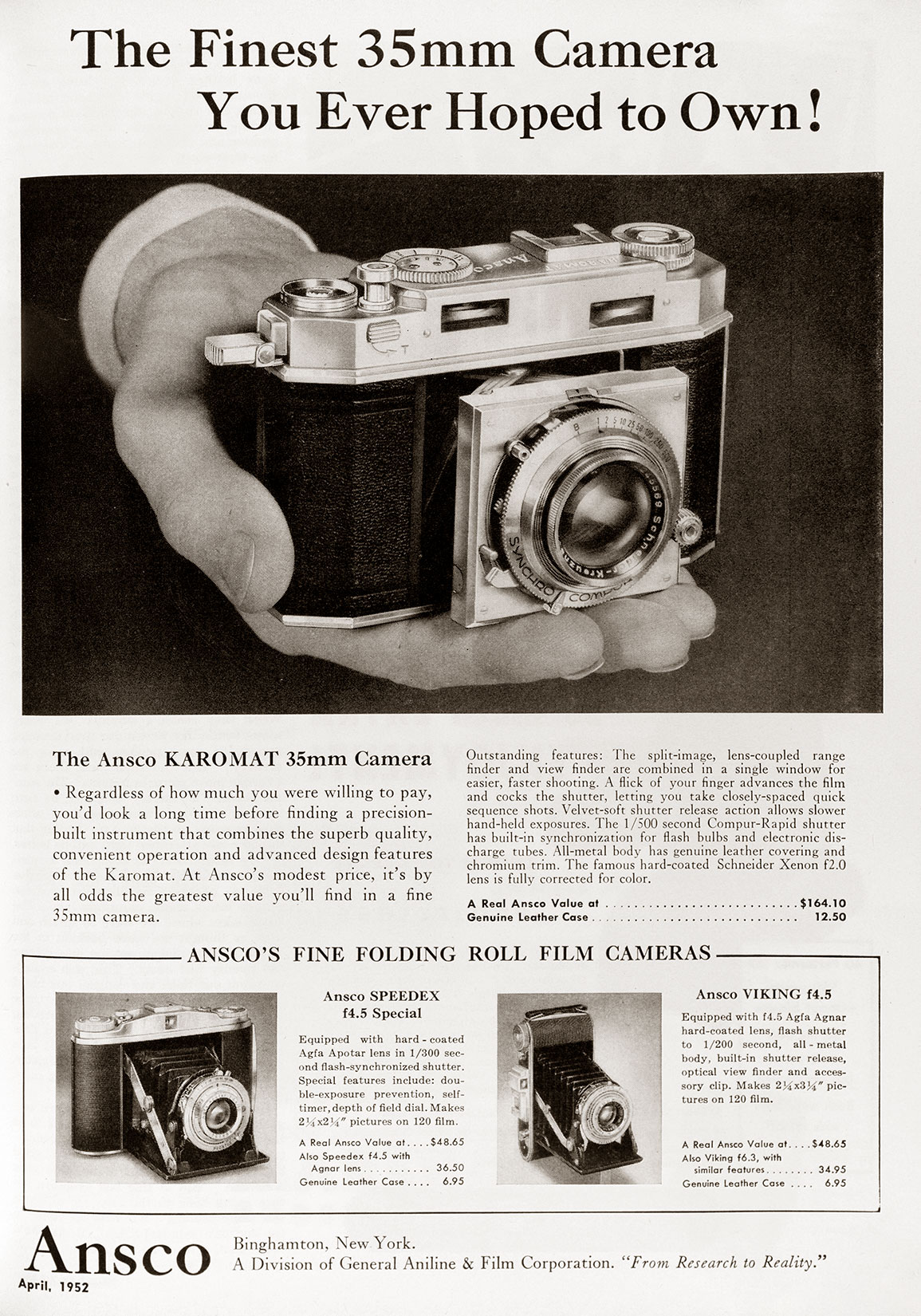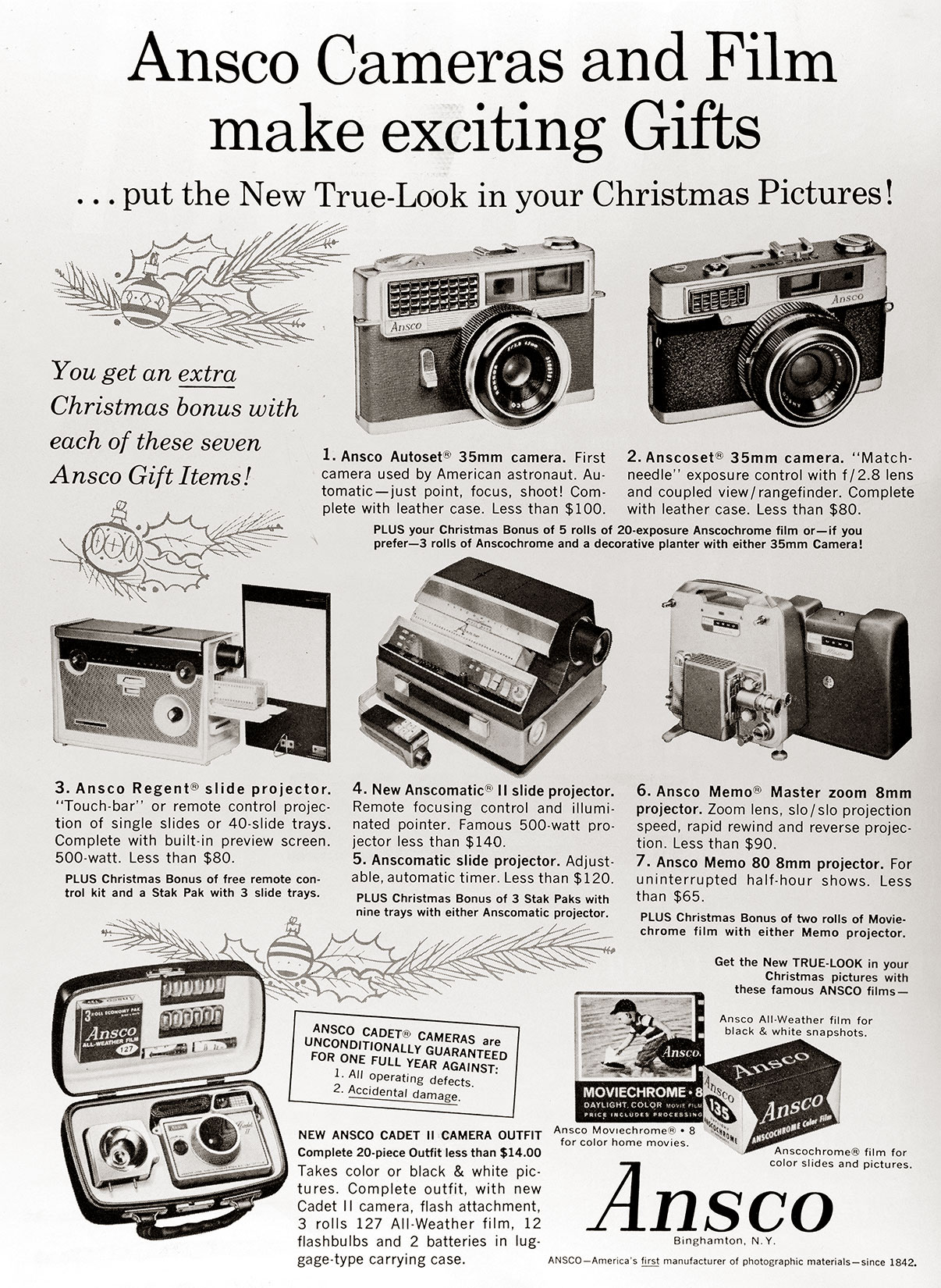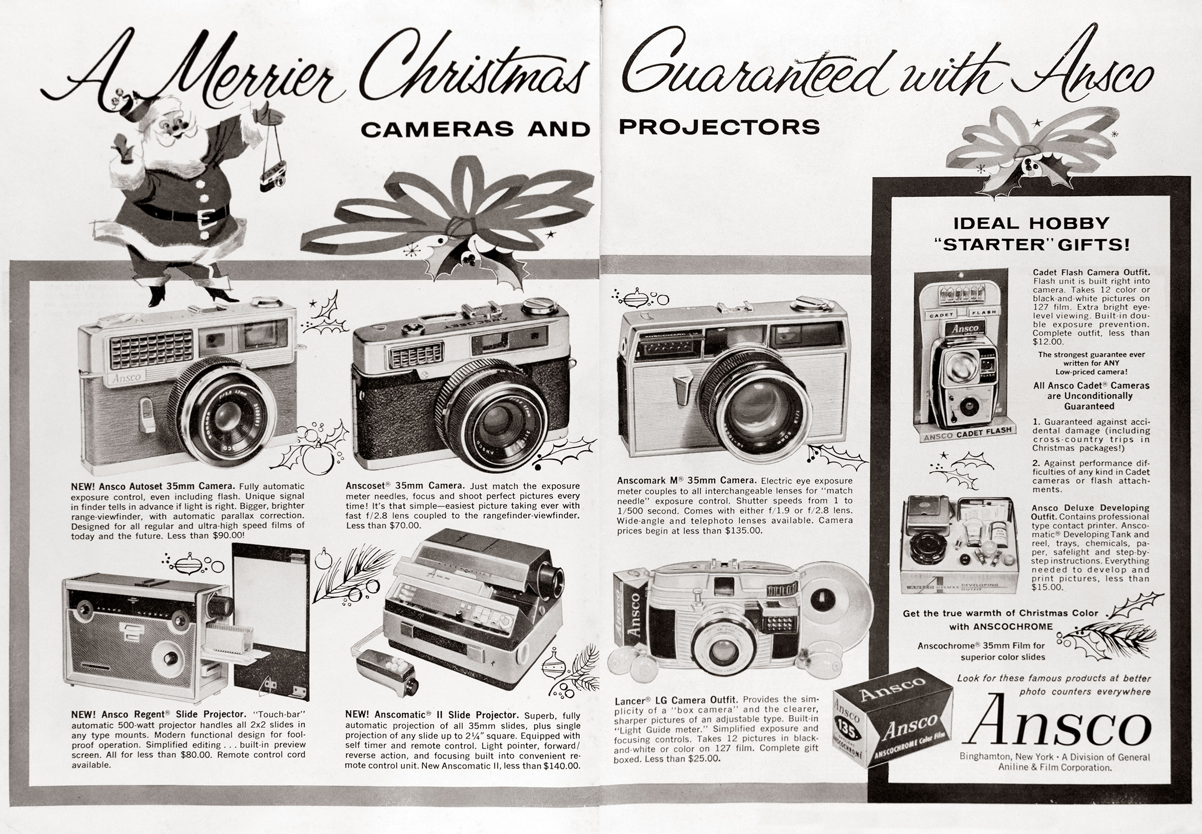 Vintage Photo Ads: Ansco Ads are arranged chronologically in descending order. Click on each ad for a high-resolution version. 1960s 1967 1965 1964 1963 1963 1962 1961 1960 1950s 1959 1958 1957 1956 1956 1955 1952 1952 1951 1950 1940s 1949 1947 1947 1947 1946 1945 1944 Share this:Tweet Click to email a link to a friend (Opens in new window) Email Like Loading...