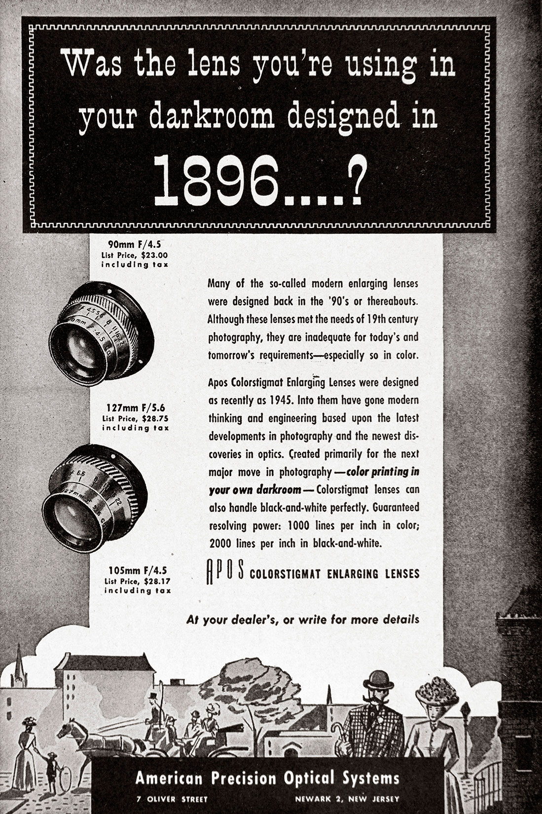 Vintage Photo Ads: American Precision Optical Systems Ads are arranged chronologically in descending order. Click on each ad for a high-resolution version. 1947 Share this:Tweet Click to email a link to a friend (Opens in new window) Email Like Loading...