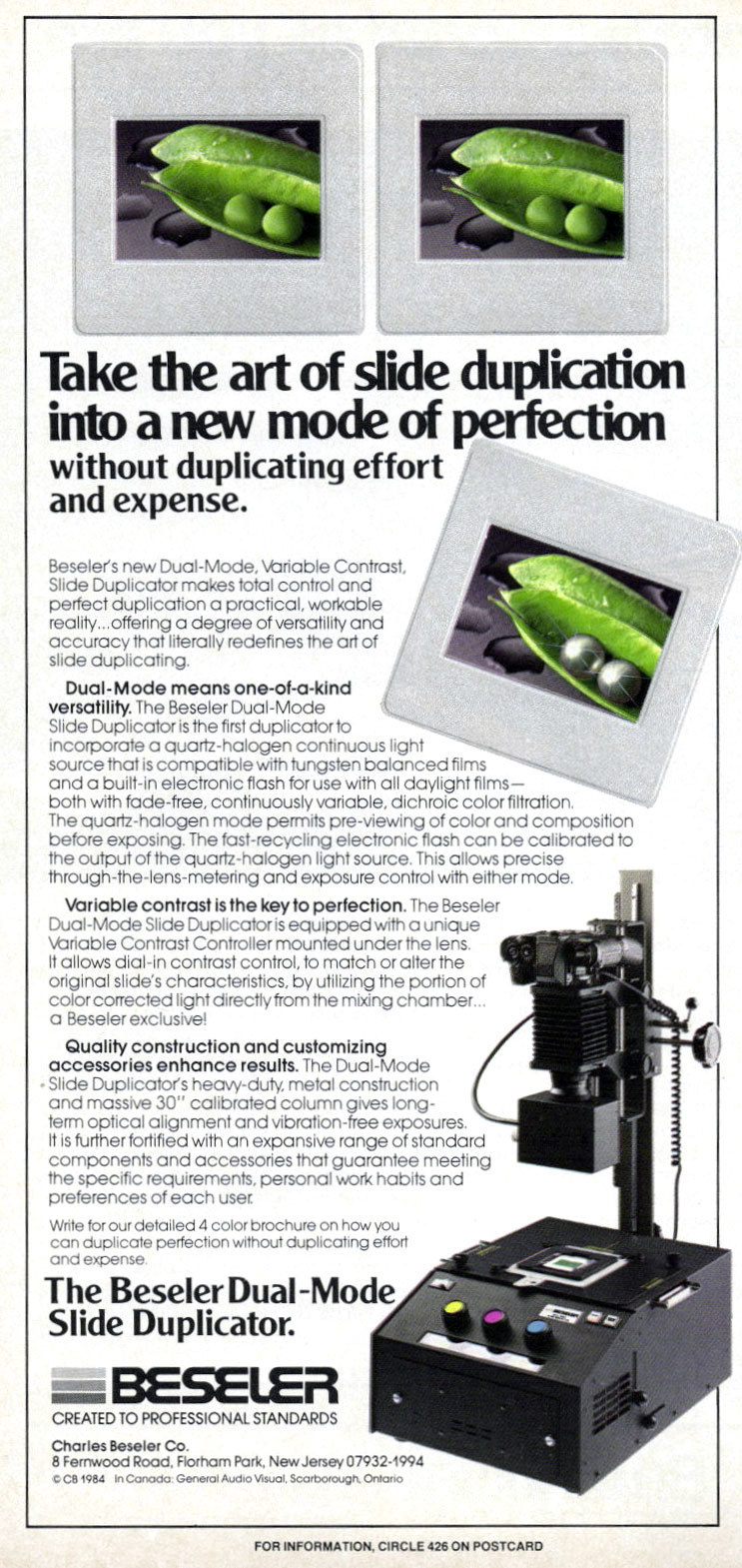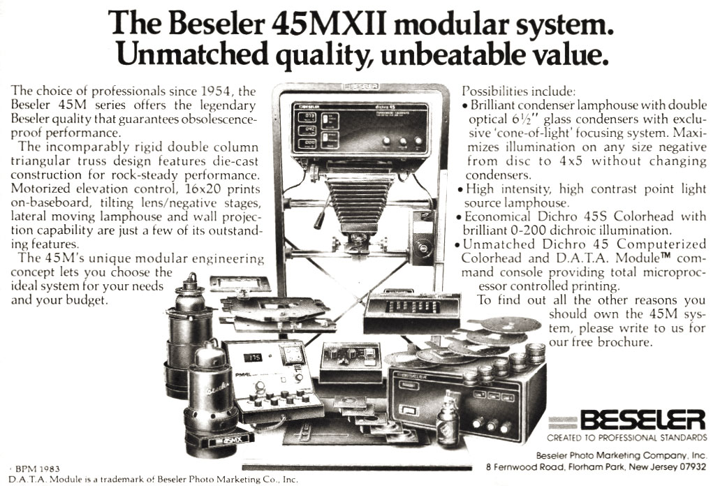 Vintage Photo Ads: Beseler Ads are arranged chronologically in descending order. Click on each ad for a high-resolution version. 1980s 1988 1986 1984 1984 1982 1982 1982 1980 1980 1970s 1978 1977 1976 1976 1976 1975 1972 1970 1950s 1959 1957 1955 Share this:Tweet Click to email a link to a friend (Opens in new window) Email Like Loading...