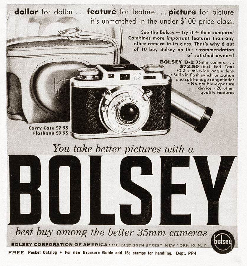 Vintage Photo Ads: Bolsey Ads are arranged chronologically in descending order. Click on each ad for a high-resolution version. 1952 1951 1950 Share this:Tweet Click to email a link to a friend (Opens in new window) Email Like Loading...