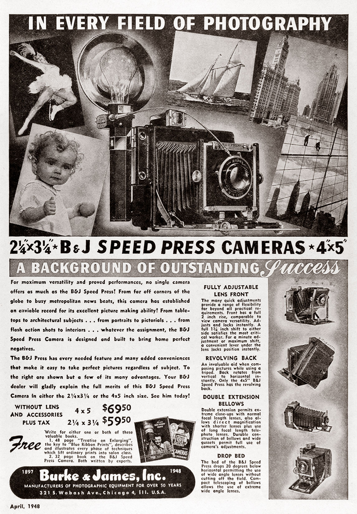 Vintage Photo Ads: Burke & James Ads are arranged chronologically in descending order. Click on each ad for a high-resolution version. 1940s 1949 1948 1947 1946 1945 1944 1942 1942 1941 Share this:Tweet Click to email a link to a friend (Opens in new window) Email Like Loading...
