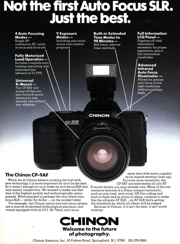 Vintage Photo Ads: Chinon Ads are arranged chronologically in descending order. Click on each ad for a high-resolution version. 1990 1989 1988 1987 1987 1982 1978 1975 Share this:Tweet Email a link to a friend (Opens in new window) Email Like Loading...