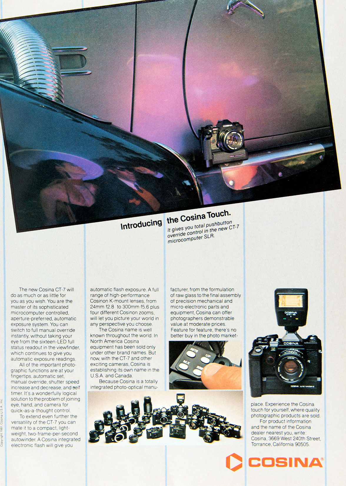 Vintage Photo Ads: Cosina Ads are arranged chronologically in descending order. Click on each ad for a high-resolution version. 1986 1981 Share this:Tweet Click to email a link to a friend (Opens in new window) Email Like Loading...