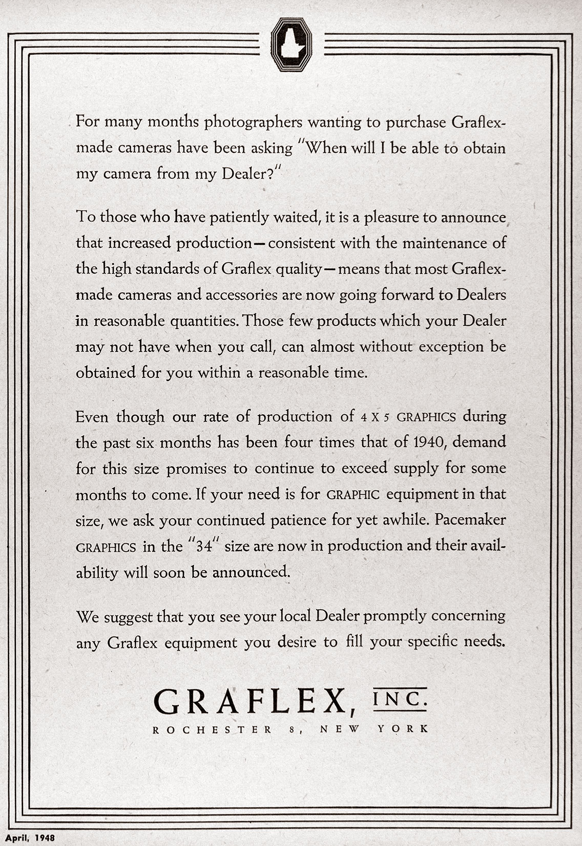 Vintage Photo Ads: Graflex Ads are arranged chronologically in descending order. Click on each ad for a high-resolution version. 1960s 1966 1963 1961 1960 1960 1950s 1959 1957 1957 1956 1956 1955 1952 1950 1950 1940s 1948 1947 1947 1945 1944 1942 1942 1941 1930s 1939 1938 1938 1937 Share this:Tweet Click to email a link to a friend (Opens in new window) Email Like Loading...