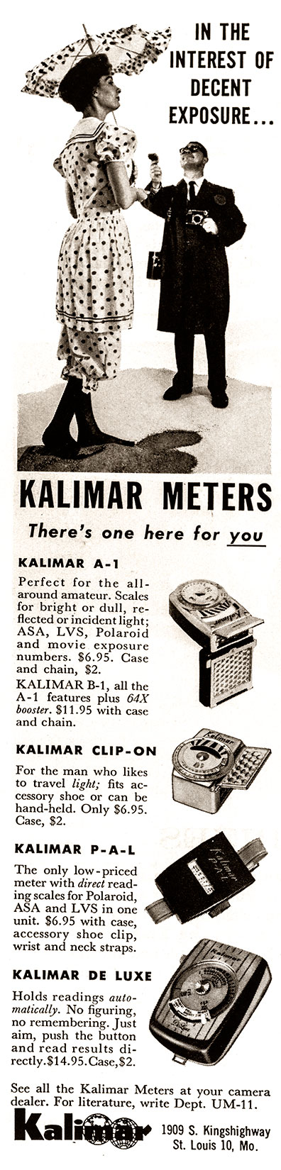 Vintage Photo Ads: Kalimar Ads are arranged chronologically in descending order. Click on each ad for a high-resolution version. 1961 1959 1957 Share this:Tweet Click to email a link to a friend (Opens in new window) Email Like Loading...