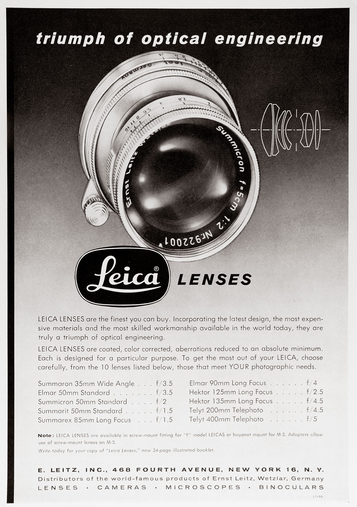 Vintage Photo Ads: Leitz Ads are arranged chronologically in descending order. Click on each ad for a high-resolution version. 1980s-90s 1990 1990 1983 1980 1970s 1975 1974 1972 1970 1970 1960s 1968 1966 1965 1964 1963 1960 1960 1950s 1958 1958 1957 1957 1956 1956 1956 1955 1950 1930s-40s 1948 1947 1947 1947 1938 1937 Share this:Tweet Click to email a link to a friend (Opens in new window) Email Like Loading...