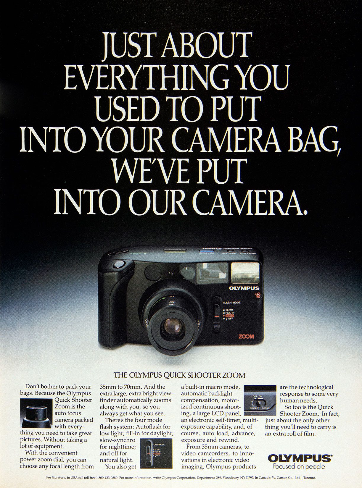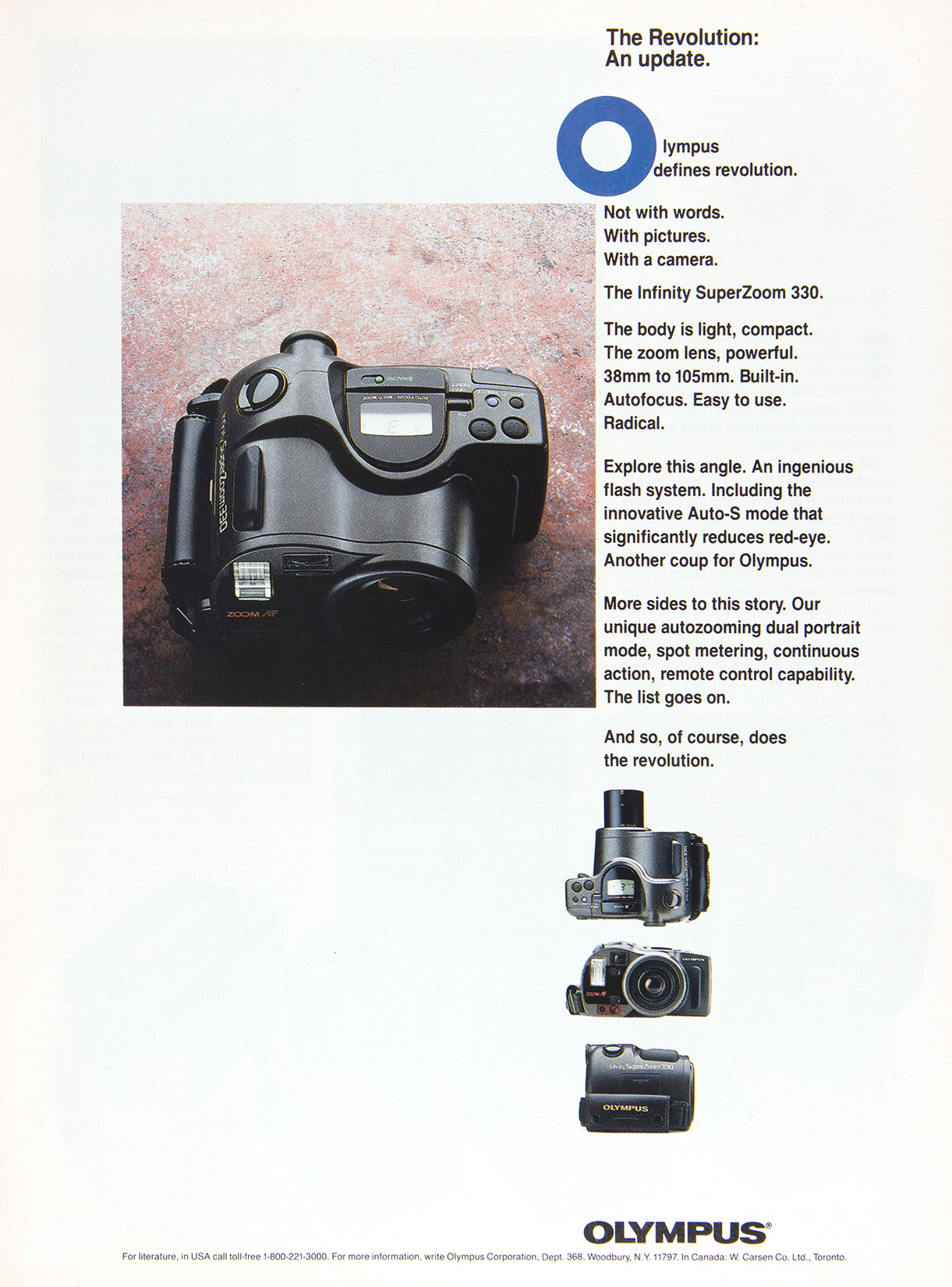 Vintage Photo Ads: Olympus 1980s-90s Ads are arranged chronologically in descending order. Click on each ad for a high-resolution version. 1999 1998 1998 1997 1995 1995 1995 1993 1992 1992 1991 1990 1989 1988 1988 1988 1988 1988 1988 1987 1987 1986 1986 1986 1985 1985 1984 1984 1983 1983 1982 1982 1982 1982 1982 1982 1982 1981 1981 1981 1980 1980 Share this:Tweet Click to email a link to a friend (Opens in new window) Email Like Loading...