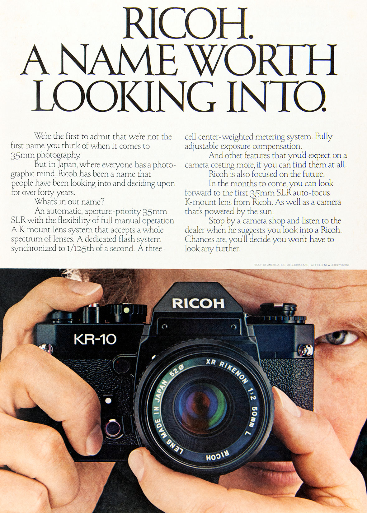 Vintage Photo Ads: Ricoh Ads are arranged chronologically in descending order. Click on each ad for a high-resolution version. 1990s 1995 1995 1980s 1989 1988 1988 1986 1986 1983 1981 1980 1970s 1975 1972 1960s 1967 1960 1950s 1959 1959 1958 1957 1957 1956 Share this:Tweet Click to email a link to a friend (Opens in new window) Email Like Loading...
