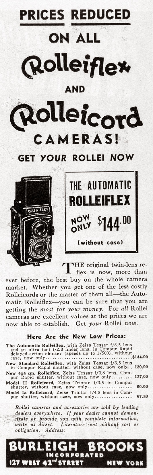 Vintage Photo Ads: Rollei Ads are arranged chronologically in descending order. Click on each ad for a high-resolution version. 1990s 1998 1994 1980s 1980 1980 1970s 1979 1978 1976 1974 1960s 1968 1966 1965 1964 1961 1960 1960 1950s 1959 1958 1957 1957 1956 1956 1956 1955 1952 1950 1950 1940s 1949 1940 1930s 1939 1938 1937 Share this:Tweet Click to email a link to a friend (Opens in new window) Email Like Loading...