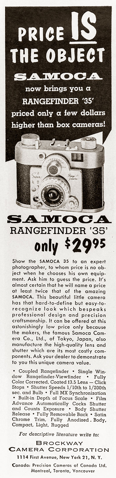 Vintage Photo Ads: Samoca Ads are arranged chronologically in descending order. Click on each ad for a high-resolution version. 1957 Share this:Tweet Click to email a link to a friend (Opens in new window) Email Like Loading...