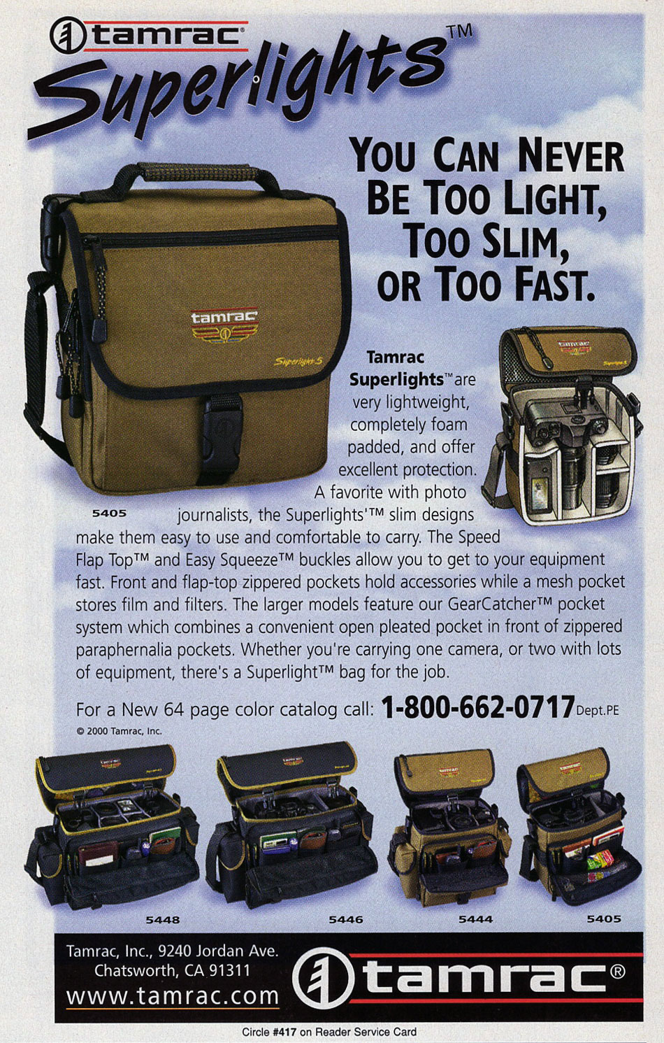 Vintage Photo Ads: Tamrac Ads are arranged chronologically in descending order. Click on each ad for a high-resolution version. 2001 2000 1999 1998 1997 1993 1993 1992 1989 Share this:Tweet Click to email a link to a friend (Opens in new window) Email Like Loading...